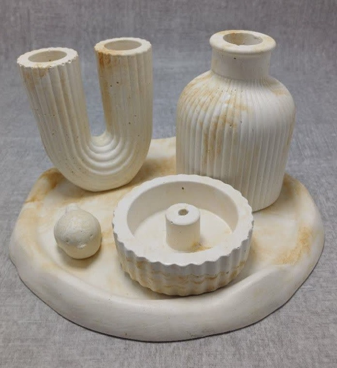 امروزه کاربرد اکسسوری های دست ساز سنگ مصنوعی با طرحهای ابتکاری و مینیمال با رنگ های رنگارنگ در معماری و دکوراسیون داخلی، باعث جذابیت بیشتر فضا خانه می شود. اکسسوری های سنگ مصنوعی جلوه ای به خانه و محل زندگی شما می دهد که شاید نتوان چیز دیگری را برابر با آن دانست، بنابراین در طراحی های مختلف برای دکوراسیون داخلی منزل اکثر طراحان استفاده از اکسسوری سنگ مصنوعی را پیشنهاد می کنند. از مجموع این اکسسوری ها می توان، گلدان های سنگ مصنوعی رومیزی، ست پذیرایی، ساعت های بتنی، شمعدان، قلمدان ها، جای کارت ویزیت، قاب عکس و تابلو، آباژور و چراغ بتنی، مجسمه، جا عودی، جاشمعی، سینی، اردوخوری، گلدان، قندان و … نام برد.