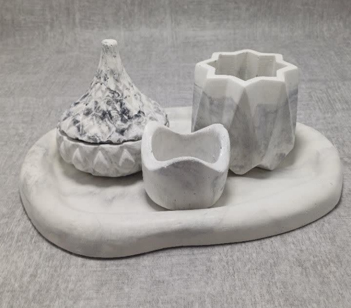 امروزه کاربرد اکسسوری های دست ساز سنگ مصنوعی با طرحهای ابتکاری و مینیمال با رنگ های رنگارنگ در معماری و دکوراسیون داخلی، باعث جذابیت بیشتر فضا خانه می شود. اکسسوری های سنگ مصنوعی جلوه ای به خانه و محل زندگی شما می دهد که شاید نتوان چیز دیگری را برابر با آن دانست، بنابراین در طراحی های مختلف برای دکوراسیون داخلی منزل اکثر طراحان استفاده از اکسسوری سنگ مصنوعی را پیشنهاد می کنند. از مجموع این اکسسوری ها می توان، گلدان های سنگ مصنوعی رومیزی، ست پذیرایی، ساعت های بتنی، شمعدان، قلمدان ها، جای کارت ویزیت، قاب عکس و تابلو، آباژور و چراغ بتنی، مجسمه، جا عودی، جاشمعی، سینی، اردوخوری، گلدان، قندان و … نام برد.