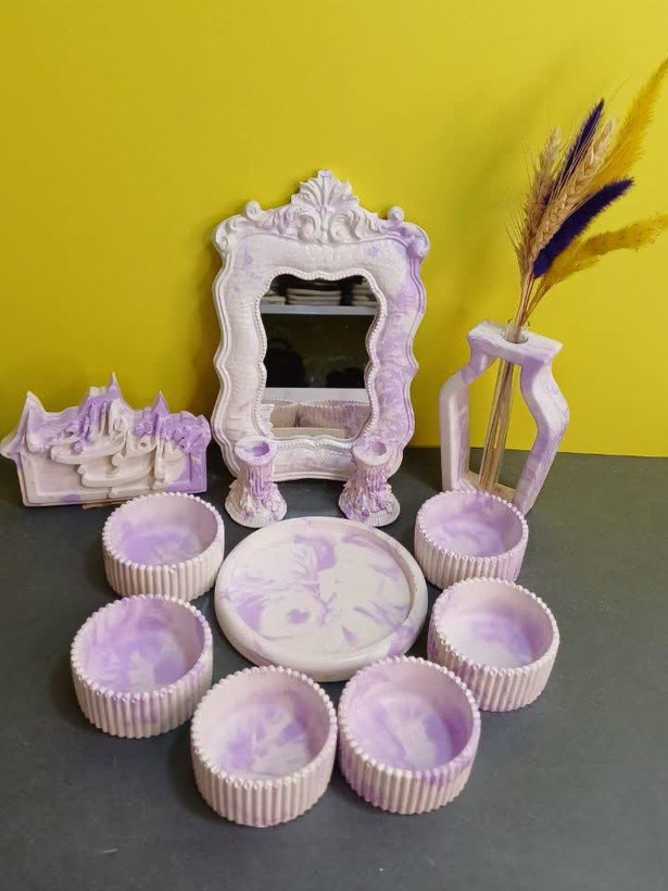 سنگ مصنوعی به دلیل زیبایی و ماندگاری بالایش، گزینه مناسبی برای ساخت این ست است. این ست شامل موارد زیر میباشد: