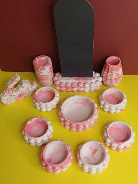 سنگ مصنوعی به دلیل زیبایی و ماندگاری بالایش، گزینه مناسبی برای ساخت این ست است. این ست شامل موارد زیر میباشد: