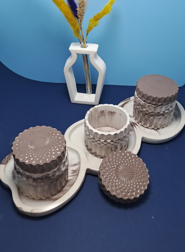 * این محصول از جنس سنگ مصنوعی هستش و کاملا ضد آب و قابل شستشو میباشد ۳ عدد بانکه همراه با سینی بسیار جذاب و زیبا است