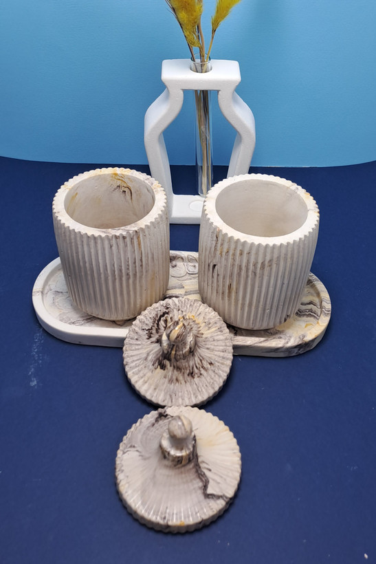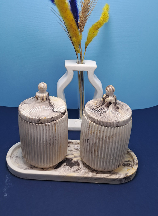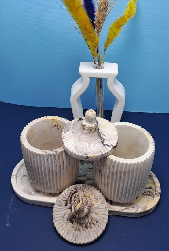 * این محصول از جنس سنگ مصنوعی هستش و کاملا ضد آب و قابل شستشو میباشد ۳ عدد بانکه همراه با سینی بسیار جذاب و زیبا است